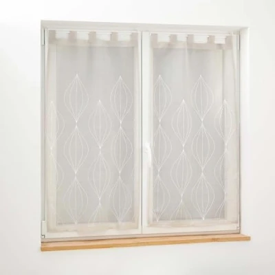 Douceur d'Intérieur Interior Softness, Straight Pair with Loops (2 x 60 90 cm) Galactee Taupe, Embroidered Sandblasted Veil