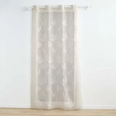Douceur d'Intérieur, Net Curtain with Eyelets 140 x 240 cm Berry Taupe Embroidered Sandy Voile