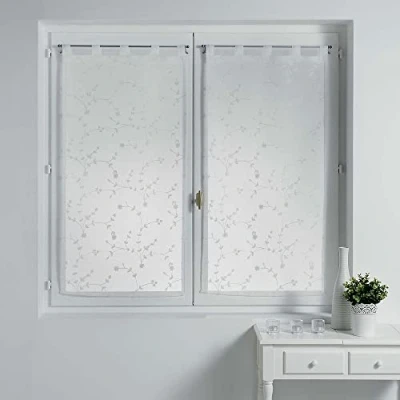 Douceur d'Intérieur, Pair of Net Curtains with Loops (2 x 60 160 cm) Small White Flower, Sandblasted Embroidered Voile
