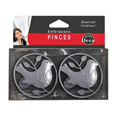 Douceur d'Intérieur, Passero 2 Clip Tiebacks (Diameter 8 cm) Grey Painted Metal