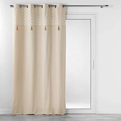 Curtain with Eyelets 140 x 240 cm Plain Cotton + Top Imp. Met. + Tassel Rafina Material: 100% cotton - range: plain cotton + top imp. MET.+POM Finish: eyelet Washing conditions: hand wash, do not tumble dry, iron at 110°