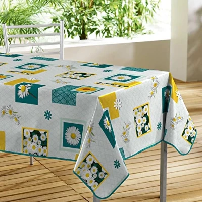 Douceur d'Intérieur, Rectangular Tablecloth (140 x 300 cm) Button D'Or Blue, PVC Photoprint