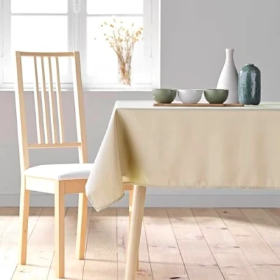INCLUDED: Rectangular tablecloth (140 x 300 cm) Essentiel Natural, Polyester POLYESTER TABLECLOTH: Lightweight and durable, this polyester tablecloth dresses the table with simplicity. Perfect for everyday use, effectively protects your table STAIN PROOF FINISH: The stain barrier creates protection on the textile, making it much easier to remove accidental stains without penetrating the fibres of the fabric. Easy care: washable at 30°C, do not tumble dry, iron at 110°C Certified purity: The Oeko-Tex seal guarantees environmentally friendly manufacturing and stands for quality and transparency.