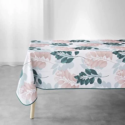 Douceur d'Intérieur, Rectangular Tablecloth 150 x 240 cm White Emerald Polyester Printed Belline