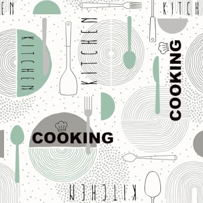Douceur d'Intérieur Roll of PVC Tablecloth (1.4m x 20m) Cooking Sage Print