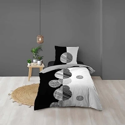 2-piece bedding set: 1 duvet cover + 1 pillowcase Composition: 100% cotton, printed with 57 threads Practical closure with press studs. Fashionable and timeless design Easy care: washable at 40 °C, dry on a moderate setting, iron at 150 °C Oeko-Tex certified
