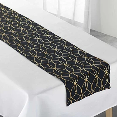 Douceur d'Intérieur Tablecloth, White/Black/Gold, 140 x 250 CM/35 CM