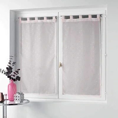 ️ INCLUDED – Pair of Eyelet Curtains (2 x 60 x 160 cm) Orion Pink, Metallic Printed Voile Metallic printed voile – thanks to its light and airy nature, the net curtain creates a soft and relaxing ambience, perfect for subtly filtering the light. Its metallic note adds a decorative touch. 5 loop finish: the loops of this curtain allow it to be easily installed by sliding the curtain rod inside. Their standard size allows them to be adapted to all the rods and ensures a harmonious hold on the rod. Easy care – Washable at 30 °C – Do not tumble dry – Do not iron
