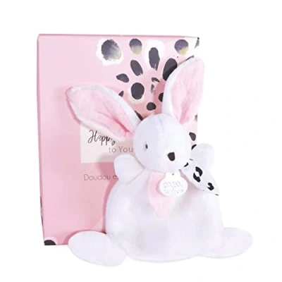 Mini cuddly toy rabbit: this mini cuddly blanket rabbit happy rose is the ideal companion to calm the baby. With its ultra-soft texture and delicate pink hue, it combines comfort and tenderness to accompany the little ones from the first days. Gift idea for birth: compact and lightweight with its 17 cm, this cuddly toy rabbit is designed for little hands of the baby. Presented in an elegant gift box, it is a perfect idea to celebrate a birth with style and softness. SOFT AND DURABLE MATERIALS: Made from high quality materials, this cuddly toy offers a soft feel and high durability. Machine washable at 30°C, remains flawless and hygienic even after many hugs. REFINED DESIGN With its pastel hue and elegant workmanship, this cuddly toy Happy Rose is both soothing and aesthetic. Perfect to calm the baby, it is also a beautiful decoration for a nursery. Lost Cuddle Guarantee: No more stress when you lose it. This cuddly toy is equipped with a unique label that allows registration on the sitedouetcompagnie.com. Finding your baby's favourite companion will be easy and fast.