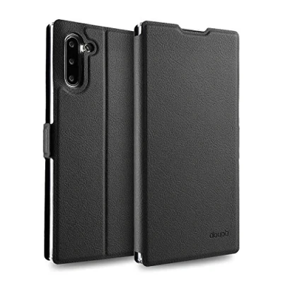 doupi Flip Cover for Samsung Galaxy Note 10, Magnet Protective Case Book Style Screen Protector Stand, black