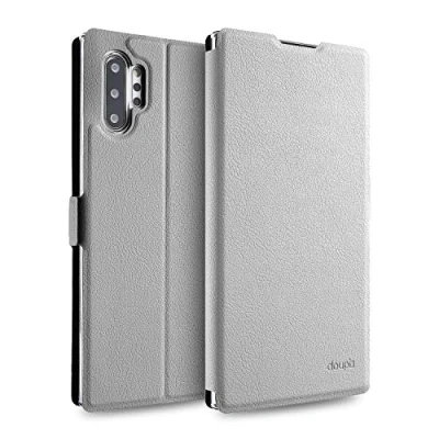 doupi Flip Cover for Samsung Galaxy Note 10 Plus, Magnet Protective Case Book Style Screen Protector Stand, white