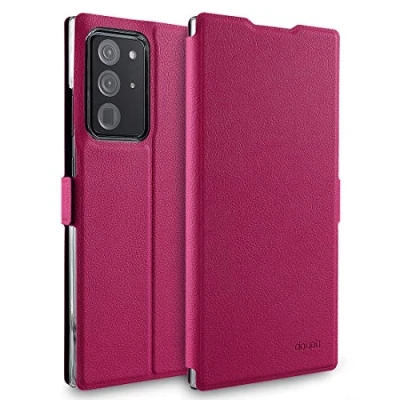 doupi Flip Cover for Samsung Galaxy Note 20 Ultra, Magnet Protective Case Book Style Screen Protector Stand, red pink
