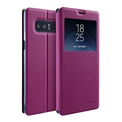 doupi Flip Cover for Samsung Galaxy Note 8, with Viewing Window Magnet Protective Case BookStyle Screen Protector Stand, red pink