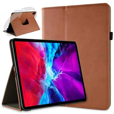 doupi Smart Flip Cover for iPad Pro 12.9 inch (4. Gen.) 2020, Deluxe Protective Case 360 Degree Rotatable Stand Screen Protector, Brown