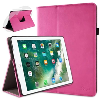 doupi Smart Flip Cover for iPad Pro (9.7 inch), Deluxe Protective Case with Sleep/Wake Function 360 Degree Rotatable Stand Screen Protector, Pink