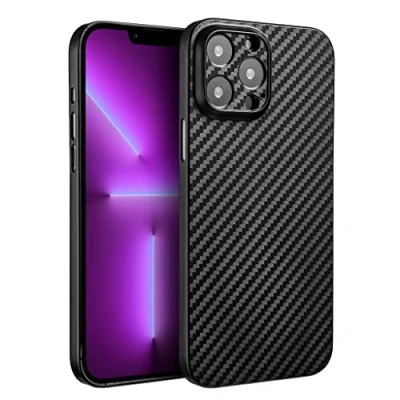 Doupi UltraSlim Case for iPhone 13 Pro Max (6.7 Inches), Carbon Fibre Look, Black, Wireless Charging Compatible