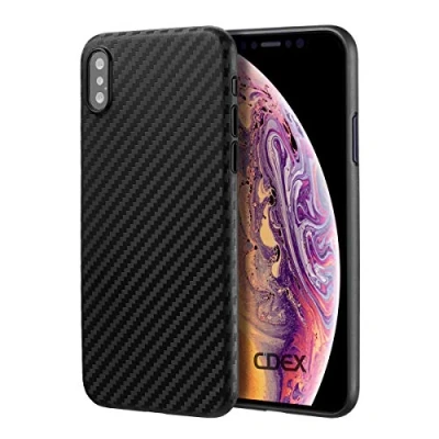 doupi UltraSlim Case for iPhone XS (5.8 inch), Ultra Thin Feather Light Skin Protective Cover, Carbon Fiber Look Black