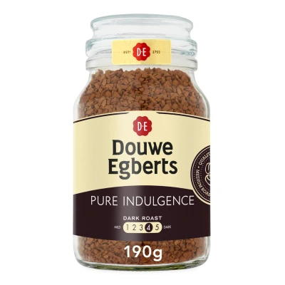 Douwe Egberts Pure Indulgence Coffee 190g is a premium, dark roast freeze-dried instant coffee made from high-quality beans, offering a rich, velvety flavour. Convenient and versatile, it’s perfect for café-style enjoyment at home. Store in a cool, dry place.