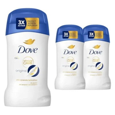 Dove Advanced Care Anti Perspirant Cream Original, Pack of 3, Women's Deodorant Stick with Pro Ceramide Technology for 72 Hours Protection Against Sweat, 50 ml