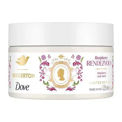 The royal treatment every queen deserves... now in a body scrub! Indulge in sweet notes of raspberry and vanilla with Dove Limited Edition Bridgerton Raspberry Rendezvous Body Scrub Body exfoliator that gently removes dull, dry skin This exfoliating scrub deeply nourishes to restore skin's natural nutrients Our scrub is formulated with ¼ moisturising cream Globally, Dove does not test on animals and this indulgent body scrub is PETA-Approved Vegan