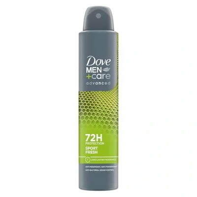 Dove Men+Care Advanced Sport Fresh Anti-Perspirant Aerosol Deodorant provides the performance you need and superior comfort for your underarm skin – tough on sweat, not on skin This deodorant for men offers up to 72 hours of sweat and odour protection, helping you stay fresh before and after your workout The improved formula of our antiperspirant spray features Triple Action technology which gives you advanced, complete protection throughout the day This antiperspirant deodorant contains ¼ moisturising cream to protect your skin from irritation Dove Men+Care Advanced Sport Fresh deodorant spray has a long-lasting, invigorating scent that will keep you feeling fresh all day Globally, Dove deodorant is not tested on animals, with our products being certified as cruelty-free and PETA approved vegan.