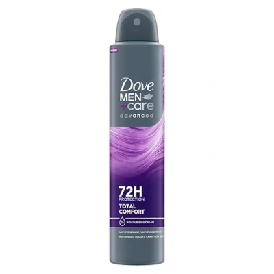 Dove Men+Care Advanced Total Comfort Anti-Perspirant Aerosol Deodorant provides 72h protection against sweat and odour This deodorant spray offers advanced care and a fresh citrus scent for long-lasting protection and confidence The anti-perspirant formula provides the performance you need and superior comfort for your underarm skin The aerosol spray features ¼ moisturising cream for protection that's tough on sweat but not on your skin This deodorant for men features our long-lasting citrus scent to leave you and your underarms smelling good all day long and beyond Globally, Dove deodorant is not tested on animals, with our products being certified as cruelty-free and PETA approved Vegan