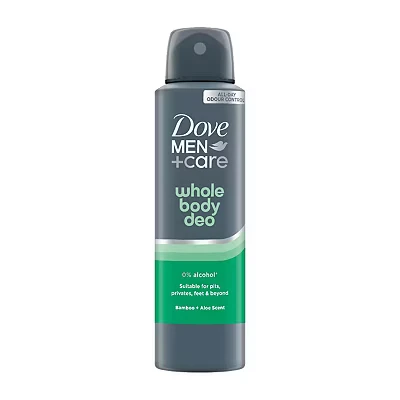 Dove Men+Care Bamboo & Aloe Whole Body Deodorant Spray 0% aluminium and alcohol free aerosol for all day odour control 150 ml