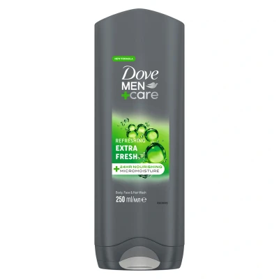 DOVE Men + CARE Refreshing Extra Fresh With 24 Hour Nourishing Micromoisture Technology 3 In 1 Hair, Body And Face Wash For 250 Ml