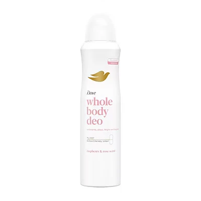 Dove Raspberry & Rose Whole Body deodorant Spray 0% aluminium for all day odour control 150 ml