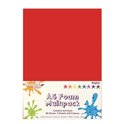 Dovecraft Essentials A5 Creative Foam Sheets Assorted Bright Colours, 50 Pack