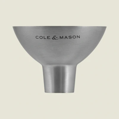 A stylish and contemporary stainless steel funnel from Cole & Mason. The funnel can be used for quickly refilling mills, shakers and spice jars without making a mess. Features a laser etched Cole & Mason logo. Dishwasher safe. This product is covered by a 2-year warranty. Please retain your receipt for proof of purchase. Accidental breakage, poor care and damage from misuse are not covered.