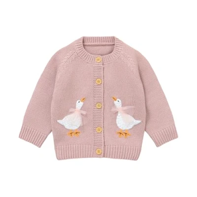 DovFanny Baby Toddler Girl Cardigan Warm Sweater Floral Long Sleeve Jumpers Coats Knitted Clothes with Cute Goose (UK, Age, 12 Months, 18 Pink)
