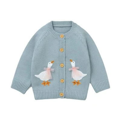 DovFanny Baby Toddler Girl Cardigan Warm Sweater Floral Long Sleeve Jumpers Coats Knitted Clothes with Cute Goose (UK, Age, 6 Months, 9 Blue)