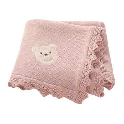 DovFanny Cotton Cellular Baby Blanket Knitted Soft for Newbron Boy and Girls with Lovely Embroidery Bear