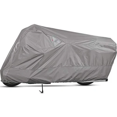 Waterproof and breathable motorcycle cover that protects against rain, mildew, and fading caused by the sun's UV rays; Features heat shield against warm pipes Made with ClimaShield Plus fabric protection, a 300 Denier, and solution-dyed polyester fabric with a durable water-repellent top coat; Soft cotton protects windshield Reflective Moisture-Guard vent system prevents moisture build-up under the cover; Includes a polyurethane and mildew-resistant undercoating Elastic shock cord is sewn into the bottom to provide a snug fit; Polyester webbing belly strap is sewn in to prevent the cover from coming off in high winds International products have separate terms, are sold from abroad and may differ from local products, including fit, age ratings, and language of product, labeling or instructions.