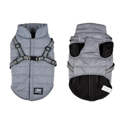 Down Jacket with Reflective Harness and Zip Up Size M/35 cm Grey