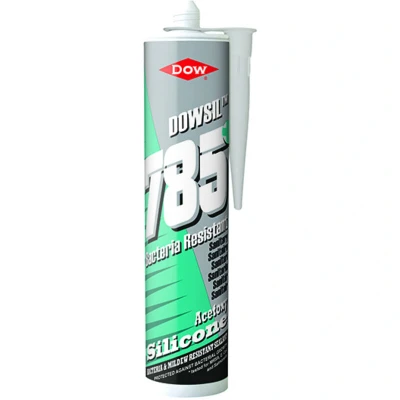 General description Dowsil 785+ is a one-part bacteria-resistant silicone sealant in Manhattan Grey, designed for sealing sanitary fittings such as baths, showers, sinks, urinals, and ceramic tile joints. It provides strong adhesion to most non-porous surfaces, including ceramics and porcelain, and contains a fungicide to resist mold growth and protect against bacteria such as MRSA, E. coli, and Salmonella. The sealant cures quickly, becoming tack-free in approximately 30 minutes and fully curing within 24 hours, with a joint movement capability of ±20%. Technical specifications Type: One-part silicone sealant Color: Grey (Manhattan Grey) Container: Cartridge (310 ml) Skin over time: Approximately 14 minutes Full cure time: About 24 hours Movement capability: ±20% Shelf life: 2 years MPN: DOW3279472 EAN: 5413278248756 Compatibility and accessories Suitable for sealing plastic, glass, ceramic, porcelain, and vitreous enamel surfaces Best applied with a sealant gun and cartridge