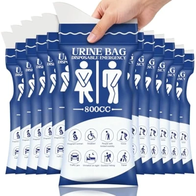 Reliable Emergency Solution: Be prepared anywhere! This portable urinal bag offers an 800ml capacity, perfect for sudden needs while traveling, camping, or stuck in traffic. A discreet and quick relief solution for all ages. Leak-Proof & Odor-Free: Disposable urine bags featuring a secure zip-seal that locks in liquid tightly. No leaks, no spills, and no unpleasant smells — guaranteed cleanliness and peace of mind in any situation. Ultra Portable & Compact: Emergency mini toilet foldable to just 6x3 inches and lightweight like a smartphone. Easily fits in your pocket, bag, or glove compartment. Always within reach when you need it most. Easy & Hygienic to Use: Toilet pee bags wide leak-proof opening makes it simple to use without mess. Just seal after use for safe and tidy disposal. Ideal for quick and clean relief on the go. Versatile for All Users: Wee bags suitable for men, women, children, seniors, and patients. Perfect for cars, tents, hospitals, and outdoor trips — your go-to portable toilet for any scenario.