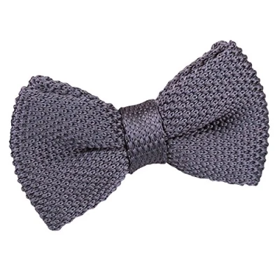 DQT Boys Knit Knitted Casual Plain Pre tied Bow Tie Charcoal