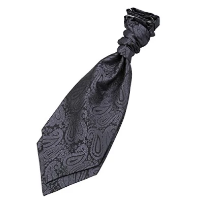 DQT Boys Paisley Floral Wedding Cravat Charcoal Grey
