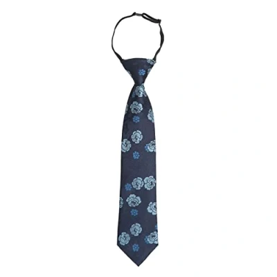 DQT Floral Rose Wedding Page Boy Elastic Pre Tied Neck Tie for Boys Blue