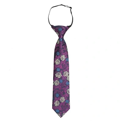 DQT Floral Rose Wedding Page Boy Elastic Pre Tied Neck Tie for Boys Purple & Yellow