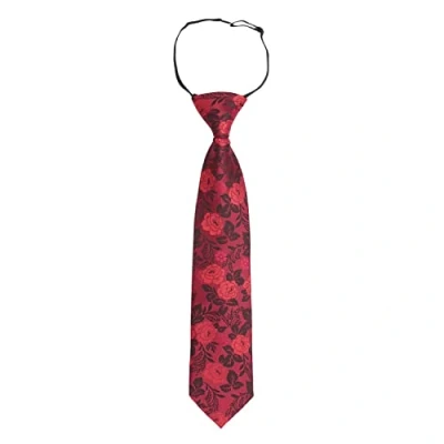 DQT Floral Rose Wedding Page Boy Elastic Pre Tied Neck Tie for Boys Red