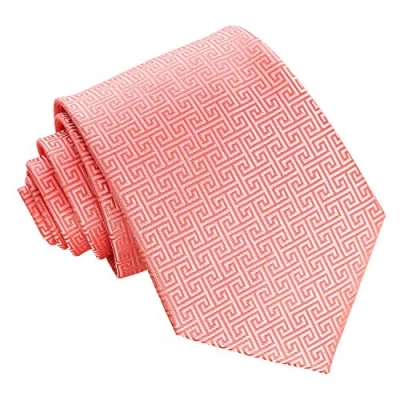 DQT Greek Key Patterned Formal Wedding Classic Neck Tie for Men in Coral