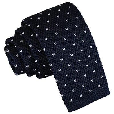 DQT Knit Knitted Formal Casual Flecked V Polka Dot Skinny Tie Midnight Blue