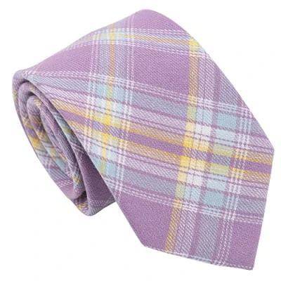 DQT Men's Madras Plaid Patterned Cotton Business Formal Classic Tie Lilac