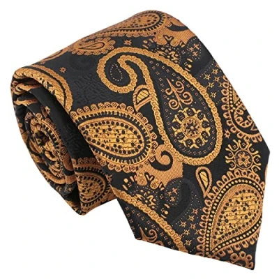 DQT Men's Paisley Bohemian Floral Wedding Formal 8cm Classic Tie Black & Gold