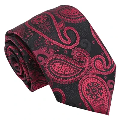 DQT Men's Paisley Bohemian Floral Wedding Formal 8cm Classic Tie Black & Red