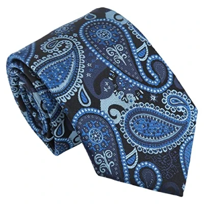 DQT Men's Paisley Bohemian Floral Wedding Formal 8cm Classic Tie Blue & Black