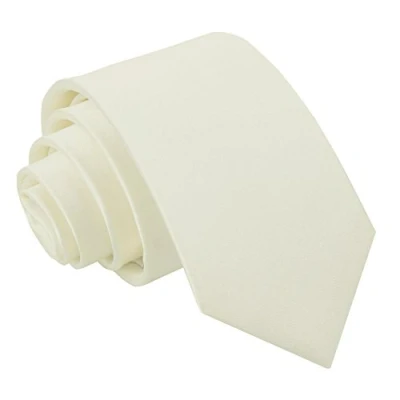 DQT Men's Plain Satin Polyester Wedding Modern Style Slim Tie Ivory